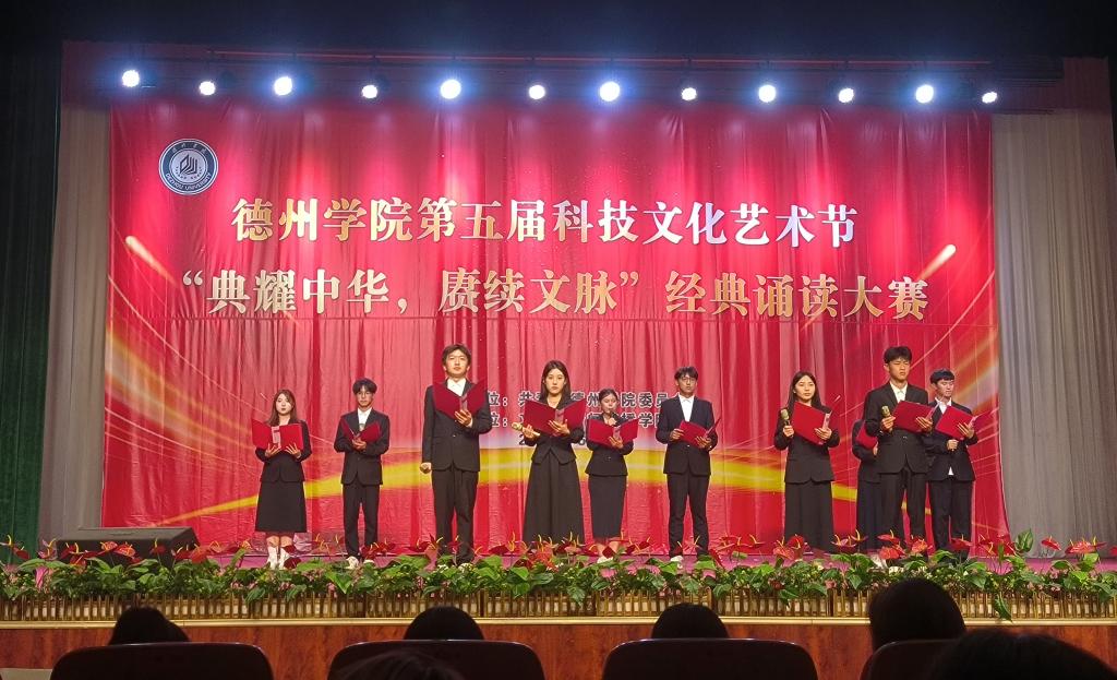 德院师生欢聚一堂,以中华文化为主线,以吟诵等艺术形式展现中国文化的源远流长和博大精深,回顾中国的辉煌历史,讴歌为祖国而拼搏、为人民而奋斗的英雄,抒发德院学子为传承中华优秀传统文化而不懈奋斗的无限豪情。同学们以充满诗意与激情的表演,绘制了一幅幅生动的文化画卷,为全院师生共上了一堂“思政大课”。选手们以细腻入微的演绎,将文字中的情感表达得淋漓尽致,令人仿佛置身于一个充满情感波动的场景中。《红船颂》《何以华夏,何以中国》《青春中国》《读中国》《月光下的中国》等朗诵节目,通过优美细腻的语言,展示了华夏大地的深厚底蕴,道出了对祖国的热爱和赞美,向祖国75周年华诞献礼。《满江红》《誓者》《齐鲁颂歌》等节目诠释了爱国主义的真谛,让我们深切感受到了家国情怀的厚重与深远。《村居》将听众带入了一座古朴而宁静的村落,让人在喧嚣的尘世中寻得一份心灵的慰藉。文学与新闻传播学院大学生朗诵团和柳湖吟诵社的朗诵节目《蜀道难》《橘颂》和《采薇》让我们感受到了中国传统诗歌的谐美雅洁,悠长韵味。文学与新闻传播学院培养的留学生在《颂端午》朗诵节目中,用中文吟诵与端午节相关的诗词,不仅加深了对中国传统节日的理解,也让他们更加热爱中华文化,热爱这个充满魅力的国家。同时,这也为中外文化交流搭建了一座桥梁,让更多的人能够了解和欣赏到中华文化的博大精深。经过紧张激烈的角逐,评委老师们根据各组的诵读基本功、音乐选择、现场表现形式及表现力等多项标准进行量化打分,分别评选出了一、二、三等奖。