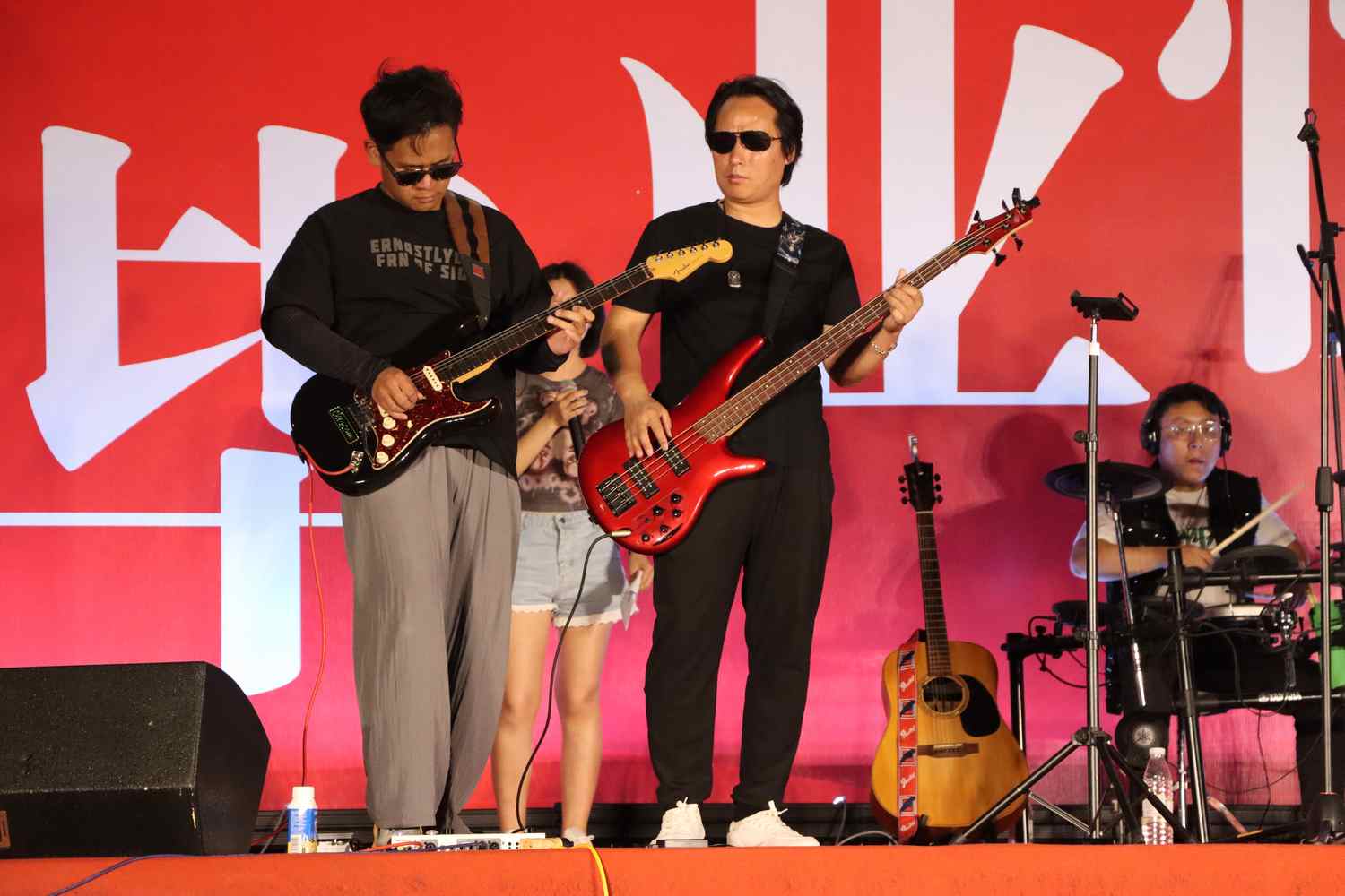 主持人采用现场猜歌送小礼物的方式去点燃大家的激情,大家热情高涨,很多同学积极参与,带来了不少充满热情的演唱,不仅如此,在下半场的音乐会过程中,“双子星”乐队还带来了《鲜花》、原创歌曲《花火》。台上演唱奔放热烈、台下欢呼此起彼伏,歌会现场热情高涨、气氛热烈。随后,主持人随机邀请现场的同学上台演唱,大家热情满满,带来了令人眼前一亮的歌曲。