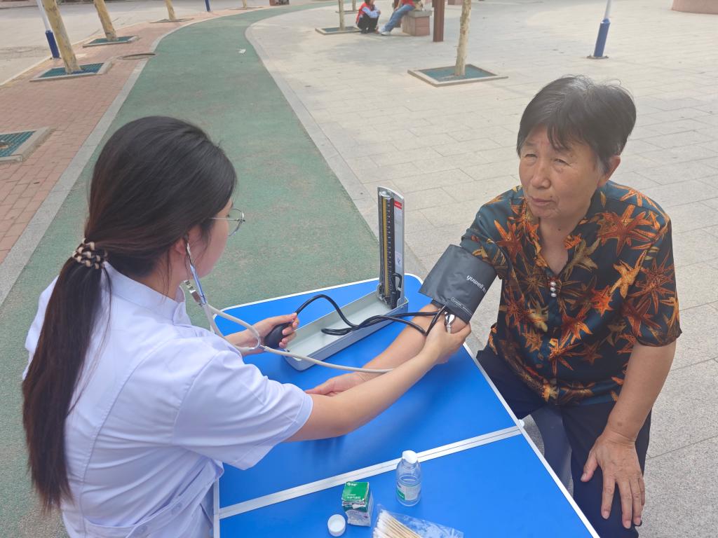 志愿者通过现场讲解、发放宣传资料、演示防暑技巧等方式,向社区居民普及中暑的危害、预防措施以及急救方法等知识。考虑到中老年人更容易受到高温天气的影响,需要更加注意防暑降温,志愿者向居民们讲解防暑妙招,如合理安排作息时间、避免在烈日下长时间曝晒、保持室内通风等。同时,志愿者现场演示了如何使用湿毛巾等简单工具进行物理降温,让居民更加直观地了解防暑降温的实用技巧。活动中,志愿者还为居民提供健康义诊常态化服务,并根据检查结果为居民提供了个性化的健康建议。