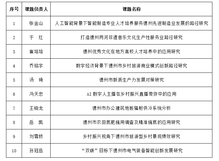 近日,德州市科学技术协会公布了2024年度德州市科协智库调研课题立项名单,球王会官网10项课题获批立项。