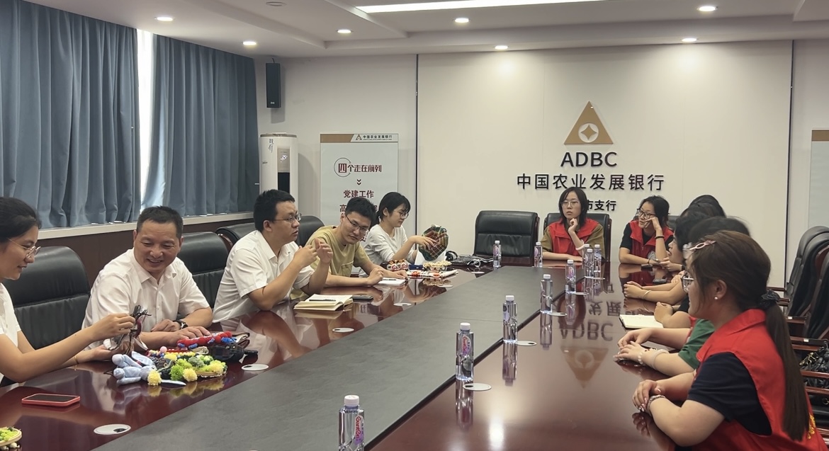 在中国农业发展银行曲阜支行的组织安排下,志愿服务团首先与中国农业发展银行曲阜支行行长王荭垚举行了座谈会。会上,双方围绕尼山镇乡村建设现状、鲁锦技艺赋能当地文化产业以及加强校地共建和供需对接等内容展开进一步交流。