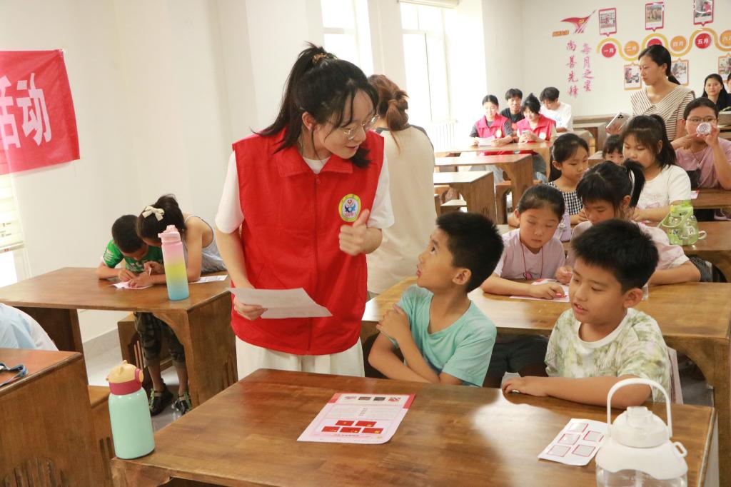 志愿服务队精心筹备、认真备课,分别从思想引领、文明生活、艺术素养、文化传承、快乐学习、身心成长、科技创新七个方面为社区青少年开展社会实践活动。通过多媒体演示、游戏互动、主题宣讲、模拟操作等多元化方式深入基层,为乡村留守儿童带来了缤纷多彩的暑假生活体验。