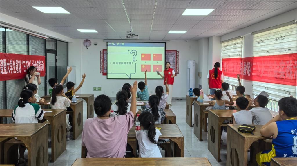 为引导青少年树立正确的价值观,培养爱国主义情感和振兴祖国的责任感,志愿者以党旗、军旗、国旗、团旗、队旗等五面旗帜切入,通过播放历史视频、知识小游戏等方式讲述旗帜背后的故事,让他们深刻理解旗帜作为国家象征的历史背景和深刻意义。青少年纷纷表示要珍惜现在的生活,努力学习思想知识,为实现中华民族伟大复兴的中国梦而努力奋斗。