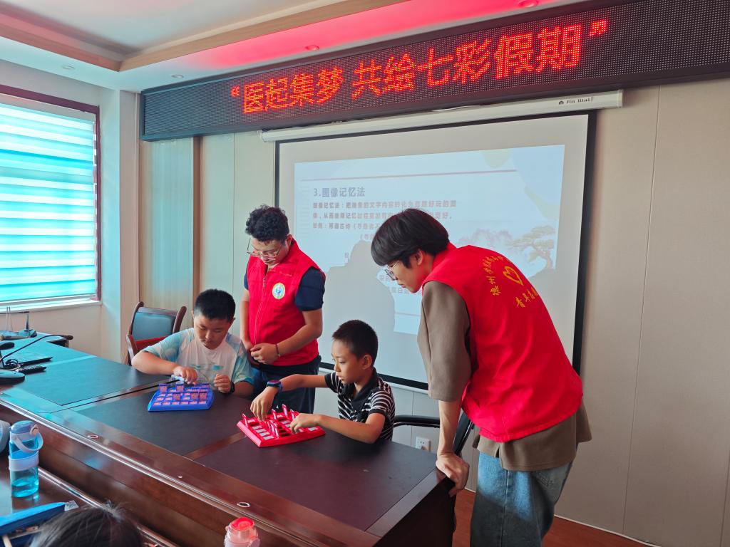 志愿者引入中国传统诗词《寻隐者不遇》,采用图像记忆法,从诗中提取关键词如“松下”“采药”“此山”和“云深”,通过观察这些图像来回忆和背诵整首诗。成语速记小游戏更是考验了青少年的记忆能力和挑战思维。志愿者向青少年传授了联想记忆、故事记忆、图像记忆等多种高效的记忆技巧,帮助他们在学习的道路上更加得心应手,调动了青少年的学习积极性,使青少年在轻松愉快的氛围中提高了记忆能力,进一步培养了自主学习的良好习惯,提高了自主学习能力。