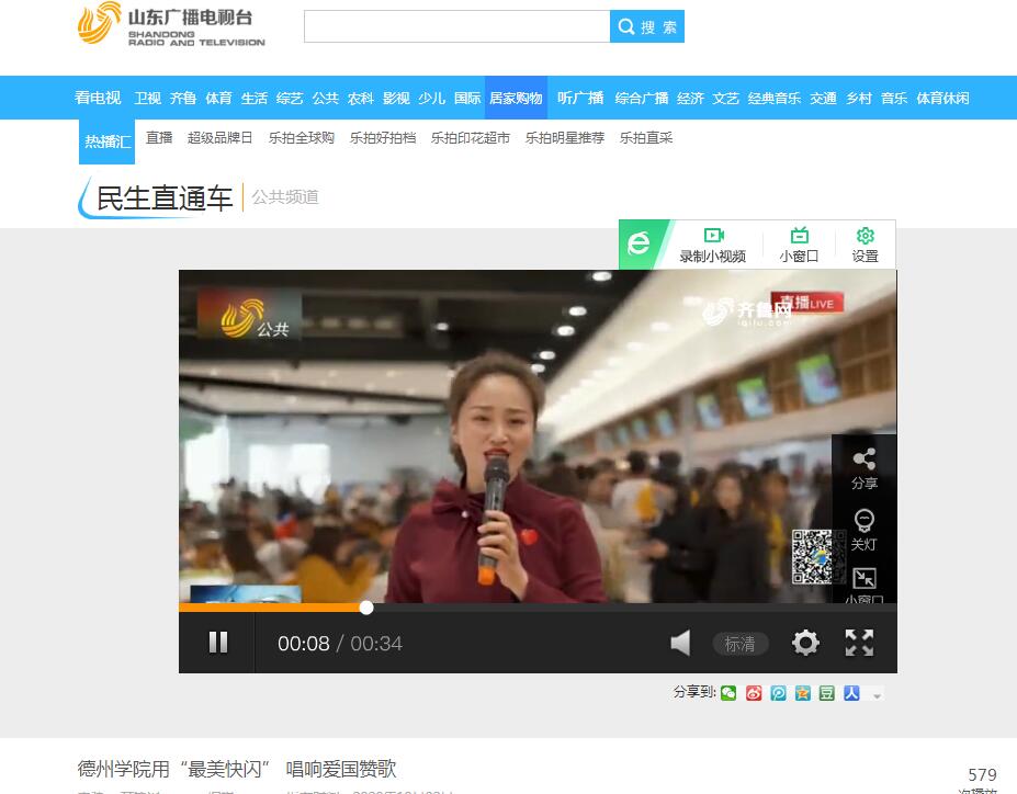 10月2日,山东广播电视台、搜狐网、齐鲁壹点、德州新闻网以《球王会官网用“最美快闪” 唱响爱国赞歌》为题报道学校团委、宣传部、音乐学院、教师教育学院、数学与大数据学院组织策划的红歌快闪节目,1000余名师生参与其中,现场洋溢着青春的气息,用共唱红色歌曲的方式表达着对伟大祖国的热爱和敬仰。